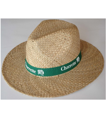 Classic promtoional natural straw hat with personalised ribbon. Classic natural straw hat that is a stylish incentive for summer, travel, drinks, music and beach promotions. The promotional classic natural straw hat is a great way of promoting your brand or event as people will wear it over and over again. You can choose you own ribbon colour which can be printed with your logo.