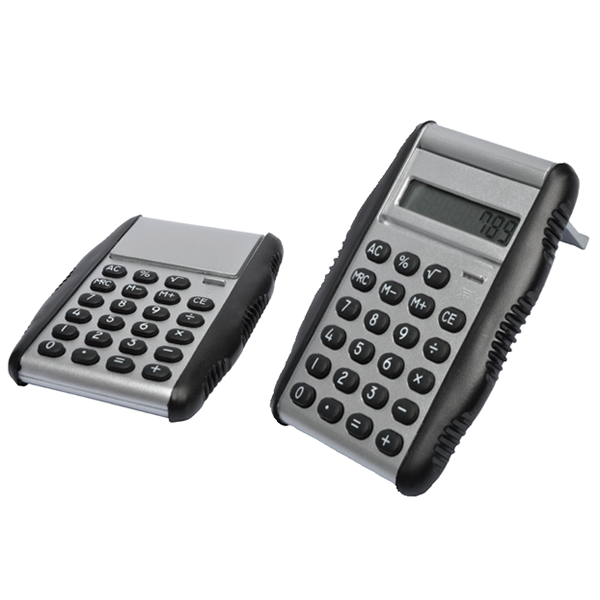 Eight digit, four function battery powered calculator.
