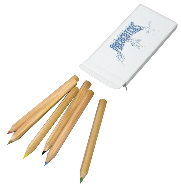 Recycled card pack contains 6 half length European timber colouring pencils.